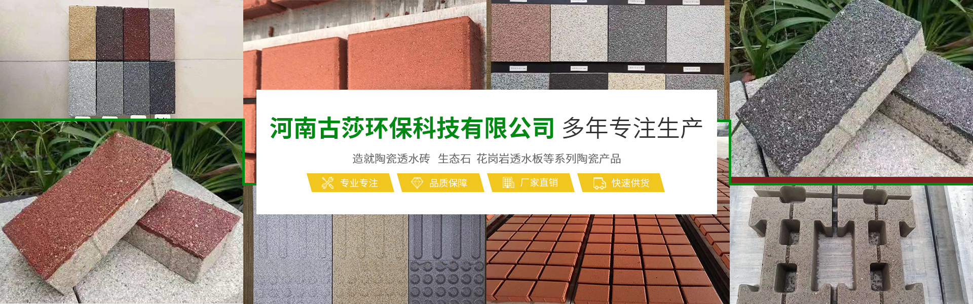 河南古莎環??萍加邢薰究傋溆诮煌屑~城市鄭州,是一家具備研發、生產、銷售能力為一體的綜合性現代化陶瓷企業。本公司專業生產經營生態陶瓷透水磚、生態鋪石、PC仿石材透水磚、PC仿石材景墻磚、普通透水磚、燒結磚等系列產品,完善的研發團隊,完善的生產流水線設備,打造完善的陶瓷企業。古莎環??萍棘F代化陶瓷企業是美化城市,改善生活環境質量的生態環保產品,可廣泛應用于公共建筑廣場、城市道路、公園、藝術景觀、廊道、房地產、別墅住宅小區、地鐵口、車站、高速公路服務區等。古莎環保科技在原有陶瓷企業基礎上,另拓展園林綠化、市政施工、瀝青包工包料施工、公路維修等業務板塊,專業培訓了一些園林綠化、市政施工技術人員,并有多年的施工養護經驗以及建筑工程經驗。保證市政工程施工質量以及園林綠化后期養護規范化、專業化。古莎環??萍妓裱钠髽I與品牌發展思路,是奠定在品質與產品應用之上。環保理念由我們共同倡導,理性思考,以推進步,感性溝通,以共建優越。古莎環??萍寂c大家真誠合作,攜手共進,為助力海綿城市建設,建筑高品質的綠色城市生活貢獻一份力量!